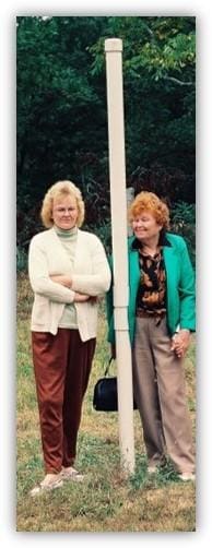 Dr Sarah Hieronymus and her daughter, Judy are photographed in Sparta, Georgia beside a scalar light cosmic pipe. The cosmic pipe is installed in the ground thereby broadcasting scalar light into the topsoil of a farm or tree orchard in order to re-mineralize the soil and disassemble toxic chemicals such as pesticides.