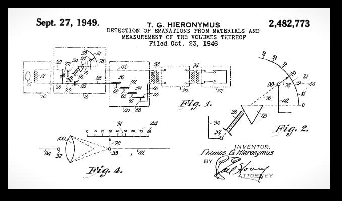 Dr Galen Hieronymus is one of the few scalar light researchers to be awarded a patent for a scalar energy device. The United States government issued patent # 2,482,773 on September 27, 1949. The patent recognizes the ability of the scalar energy device in, “the detection of emanations from materials and measurement of the volumes thereof.”